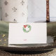 El diseño de la tarjeta de navidad Place Card o Escort Card incluye una corona de color de agua y un arco rojo. Espacio proporcionado para el nombre de invitado y el número de tabla. Las tarjetas se revierten para revelar sus iniciales y la fecha del boda en la parte posterior. El interior presenta un color verde sólido de cortesía. Perfecto para recepciones de bodas, fiestas corporativas o almuerzo de duchas nupciales de invierno. Diseñado para coincidir con VG Invita a la colección de Navidades de acuarela. Para ver más visitas VG Invitaciones a Zazzle