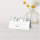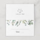 Esta tarjeta de boda para el deleite del follaje de eucalipto es perfecta para un boda moderno. El diseño presenta un eucalipto elegante de acuarela botánica, de inspiración natural. Personaliza la tarjeta de la parte trasera del lugar con los nombres de la novia y del novio y la fecha.