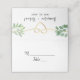Sencilla, moderna y elegante tarjeta de matrimonio con nombre y número de mesa, corazón de cuerda dorada y vegetación de color acuático rústico eucalipto.
