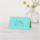 Asiento Tarjeta de plaza plegada Verde azulada y Boda de o
