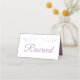 Estas hermosas tarjetas de visita son una buena manera de que sus huéspedes sepan qué asientos están reservados para la familia y otros invitados especiales. Diseñado como parte de nuestra Suite de Bodas Purple & Grey Elegant. Presenta un diseño sencillo y elegante con texto malva eslavanda sobre un fondo blanco con un Relieve metalizado falso plateado con un borde floral.