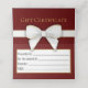 Lujoso y rico diseño vacacional con una espléndida silueta de árbol de Navidad con copos de nieve dorados. Decorada con un arco dorado blanco sobre un fondo rojo y exuberante. Este certificado de regalo es perfecto para su pequeña empresa o para regalar a amigos y familiares.