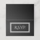 Asiento Tarjeta r.s.v.p con patrón de damasco blanco y neg