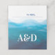 Moderno. Elegante. Esta suite estacionaria utiliza líneas depuradas, tipos de letra clásicos y una pintura acuarela de olas azules para crear un elegante estilo para su día especial. Es totalmente personalizable.