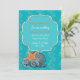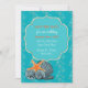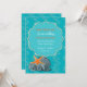 Un marine salva el anuncio de fecha con un toque tropical. El fondo abstracto azul-verde está dominado por un azul floreciente que contiene tu información y está adornado con una colección de conchas y un pez estrella naranja.La tarjeta es fácil de personalizar con su redacción, fuente, color de fuente y elección de seis tipos de papel.