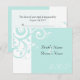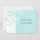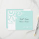 Tarjeta de confirmación para combinar con nuestra invitación de boda elegante de color aqua y blanco, con delicado fondo de hoja de voluta en espiral. Personalice en línea con los detalles de su boda.