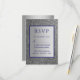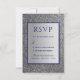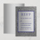 Simple, moderno, elegante, tarjeta de respuesta de boda plateada y azul real con brillo.