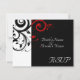 Tarjeta de confirmación para combinar con nuestra invitación de boda con espiral rojo y blanco + negro, con un fondo gráfico en negrita de hojas en espiral. Personalice en línea con los detalles de su boda.