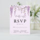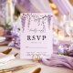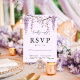Establece el tono para una boda floral elegante con esta tarjeta de confirmación de boda de glicina púrpura. Adornada con delicadas ramas de glicina colgantes, este diseño evoca una estética de jardín romántico. Los invitados pueden confirmar fácilmente la asistencia y las opciones de comida, lo que hace que la planificación del evento sea perfecta. Ideal para bodas de primavera, verano y al aire libre, esta tarjeta de confirmación combina perfectamente con temas de boda botánicos, rústicos o de viñedo.