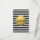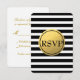 Tarjeta de confirmación de boda con rayas negras y blancas con lámina dorada. Artículos coincidentes disponibles.