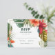 Tarjeta de confirmación de boda de jardín de verano con arco de flores exóticas