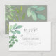 Tarjeta de confirmación de boda en verde salvia con hojas de eucalipto pintadas a la acuarela y fuente de letra elegante. Incluye opciones de comida y espacio para nombres de invitados, perfecto para bodas botánicas o minimalistas. Disponible suite coincidente.
