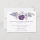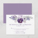 Esta tarjeta de confirmación tiene flores de acuarela moradas claras y oscuras, hojas y elementos florales plateados. El texto es totalmente editable. También puedes cambiar la fuente. Esta tarjeta tiene invitaciones, sobres, etiquetas y sellos a juego. ¡Haz que todos los elementos de tu boda estén coordinados!