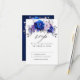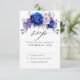 Tarjeta de confirmación de boda con tema floral elegante lila azul real con un ramo elegante de flores de rosa de color azul real, azul marino, plata, lila y hojas de eucalipto verde salvia. Por favor, contácteme para cualquier ayuda en personalización o si necesita cualquier otro producto con este diseño.