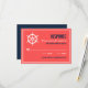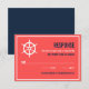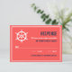 Tarjeta de confirmación de boda azul marino y coral con ilustración de timón blanca. Es perfecta para bodas con tema náutico o bodas con tema de mar y océano.
