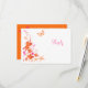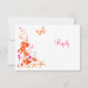 Esta tarjeta de respuesta de boda con tema náutico de playa tiene brillantes flores tropicales de tipo hibisco naranja y florituras decorativas, junto con mariposas rosadas fucsias, estrellas de mar, una concha de vieira y