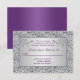 Esta tarjeta de confirmación floral de papel de plata falso y morado coincide con la invitación de boda que se muestra a continuación. Todo el texto es personalizable y también la elección del papel. Si necesita otros elementos coincidentes en este mismo diseño, por favor envíe un correo electrónico a niteowlstudio@gmail.com.
