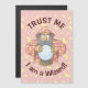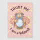 Viejo mago con capa rosa mirando la bola mágica de cristal.