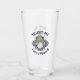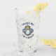 Viejo mago con capa azul mirando la bola mágica de cristal.