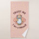 Viejo mago con capa rosa mirando la bola mágica de cristal. Texto personalizado.