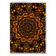 Un atractivo diseño de mandala kaleidoscópica abstracta en oro, rojos de cobre y negro. Tal vez reminiscencias de un techo adornado con cúpula de algún tipo de templo, catedral o mezquita. Algunas de las formas se parecen a los motivos de los ojos en las pantallas de plumas de pavo real, Card es amarillo pálido en el interior (personalizable) y se ha dejado en blanco para el mensaje o el saludo personalizado.