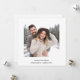 Estas sencillas y elegantes tarjetas de vacaciones en blanco y negro presentan una imagen instantánea con un texto vintage de estilo máquina de escribir que dice "feliz navidad" y tus nombres. Añade tu foto personal favorita al frente, y un mensaje al fondo.