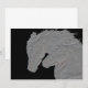 Cabezas de caballo plateadas con aspecto repujado sobre fondo negro, personalizables para tu fiesta. Perfecto para boda, aniversario, amor y más.
