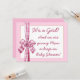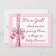 Borde rosa dulce con un lazo y una proa ilustrados (el arco está impreso en la tarjeta). Esta tarjeta tiene un toque retro dulce y será perfecta para invitar a los huéspedes a su próxima ducha de bebé.