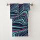 Esta es una abstracción de agate ondulante gráfico negro, cian y rosa.