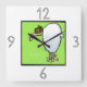 El reloj no se puede colgar en la pared porque tiene un defecto en la parte trasera.