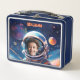 Need birthday party ideas for your boy? This spectacular photo personalized lunch box with an astronaut and space theme, featuring an illustration of an astronaut in deep space with a photo template on the visor, floating among planets, is just the ticket. Celebrate your budding astronaut with this planets and deep space theme that will make him happy, if he is crazy about all things planets, rockets, space and astronaut suits. The perfect birthday gift for a boy or girl, or as a Christmas or back to school.