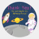 Este moderno astronauta astronauta astronauta chica pegatina de cumpleaños con un barco cohete y astronauta sobre un fondo cielo lleno de estrellas azul oscuro es perfecto para cualquier fiesta de cumpleaños o evento especial de estilo. Personalice su propio texto especial y úselo al fiesta o al evento que elija. Algunos gráficos de diseño de Prettygrafik en la tienda etsy.com/shop/Prettygrafikdesign
