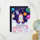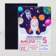 Astronauta, Espacio Ultraterrestre, Planetas Invitación al cumpleaños se presenta lanzando un cohete con un astronauta sosteniendo un pastel y muchos planetas, asteroides, estrellas fugaces y luna, y en el fondo se usa el texto moderno para realzar la elegancia de esta invitación. Amplíe su invitado con esta plantilla fácil de editar para convertirla en una amable invitación.