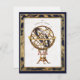 Astronomía de ilustracion vintage e imagen celestial antigua con esferas que representan partes de la Tierra incluyendo los polos Norte y Sur, los trópicos de Cáncer/Capricornio y el ecuador. Enmarcado en un hermoso borde decorativo dorado y azul. Una esfera aérea es un dispositivo astronómico temprano para representar los grandes círculos del cielo, incluyendo en los instrumentos más elaborados el horizonte, el meridiano, el ecuador, los trópicos, los círculos polares y un aro eclíptico.