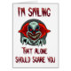 Un payaso asustadizo con las palabras estoy sonriendo que solamente debe asustarle alrededor de él. Keep que sonríe y las guarda el conjeturar.