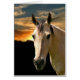 Cabeza de caballo de piel de crema con tarjeta de bienvenida con foto de fondo al atardecer