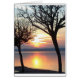 Una romántica puesta de sol en el lago, en la que se refleja el sol naranja entre dos árboles negros.