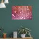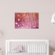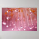 Una imagen en 3D de una lámpara de araña de cristal. Múltiples hebras de perlas de vidrio espumoso captan la luz para crear un bonito bokeh al fondo. Las gotas de vidrio borrosas se reflejan claramente en las bolas de cristal muy enfocadas en primer plano. Las ramas doradas de la candelabra y la suave atmósfera rosada y las luces dan un resplandor al atardecer en la pieza. Creado en Vue.