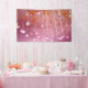 Las gotas de vidrio borrosas se reflejan claramente en las bolas de cristal con foco abrupto en primer plano. Las ramas doradas de la candelabra y la suave atmósfera rosa y las luces dan un resplandor al atardecer.