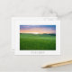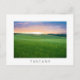 Postal de un paisaje con campos rodados con trigo verde al atardecer en el valle Val d'Orcia en Toscana, Italia con un borde blanco y el texto: "Toscana".