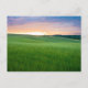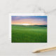 Postal de un paisaje con campos rodados con trigo verde al atardecer en el valle Val d'Orcia en Toscana, Italia.