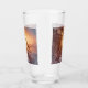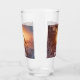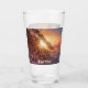 Vista de la puesta de sol sobre el paisaje invernal con el mar y cubierto de pinos nevados contra la dramática luz nocturna. Costa de nieve