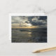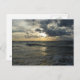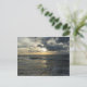 Una tarjeta con una hermosa puesta de sol sobre el mar. El mar es tranquilo, con olas de luz y el cielo está nublado.