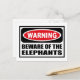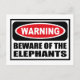 Advertencia CUIDADO DE LA postal ELEPHANTS puedes personalizar en www.WarningSignShirts.com y presenta una señal de advertencia roja y negra y CUIDADO DE LOS ELEFANTES en negritas letras negras para advertir al mundo. También puede personalizar su propia tarjeta postal con el texto que desee.