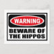 Atención de la tarjeta postal HIPPOS que puedes personalizar en www.WarningSignShirts.com y presenta una señal de advertencia roja y negra y CUIDADO DE LOS HIPPOS en negrita y negro para avisar al mundo. También puede personalizar su propia tarjeta postal con el texto que desee.