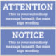 Dos avisos de atención como signos pegatinas. Cambie la redacción para mostrar su propio mensaje en cada uno de ellos. Gran tamaño. 14 pulgadas de ancho.
