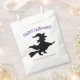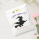 Esta bruja temible sobre un bastón de escoba aparece en este papel de Halloween con bolsos de regalo llenos de dulces deliciosos.
