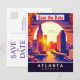Invitación de boda de fecha de salvación de Atlanta, tarjeta postal de viaje. Atardecer sobre la ciudad.