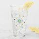 Este fabuloso tumbler de vidrio moderno de mediados de siglo presenta un estallido atómico de color azul turquesa, verde aguacate, crema y negro. ¡Esto te dará un poco de diversión a tu bebida!