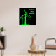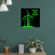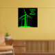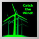 ¡Atrapa el viento! - poster negro con letras de color verde brillante y una gráfica de racimo de turbina eólica.